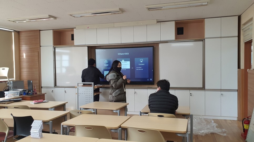 86인치 전자칠판과 칠판보조장 설치