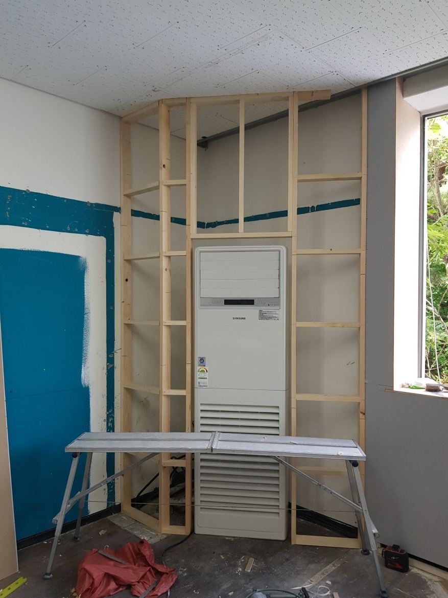 교실의 모든 비품과 기자재들이 철거된 후 본격적인 인테리어 작업이 진행되었고,