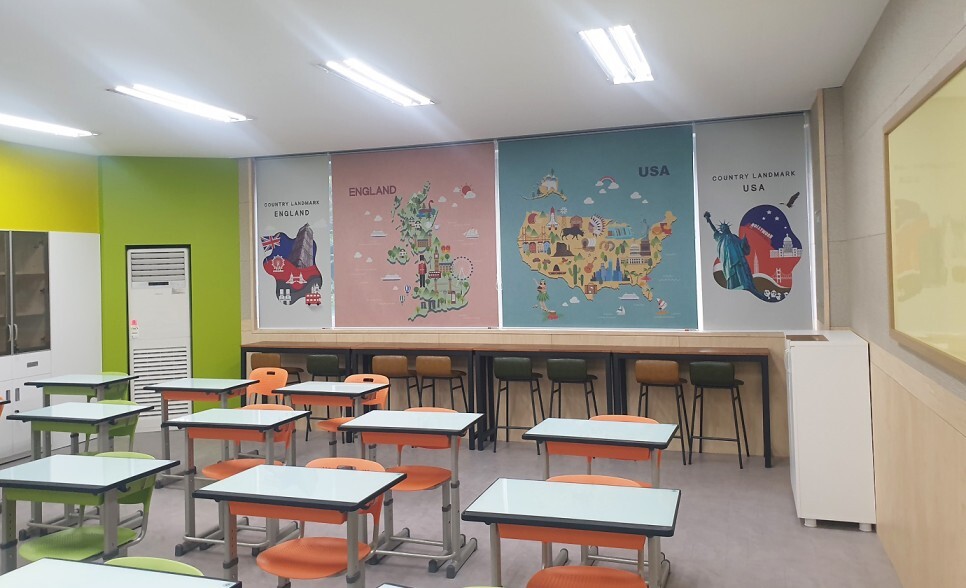 이번 여름방학동안 진행된 영어교실 리모델링은 교실 전체 인테리어는 물론,
