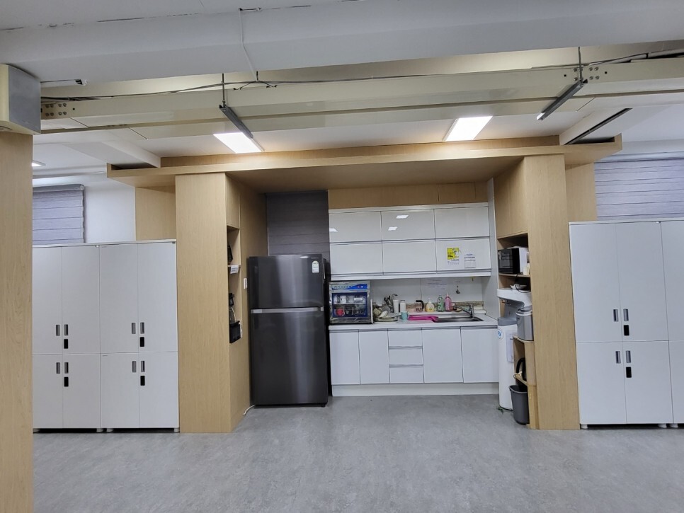 탕비실 주위로 깔끔히 목공 작업해