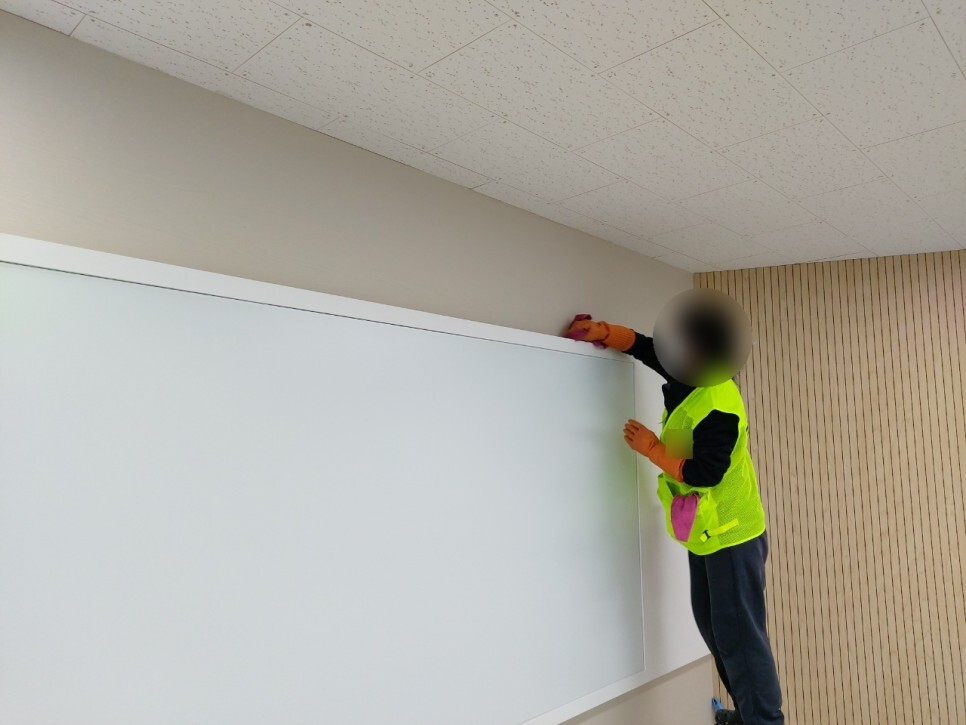 전면부 및 후면부 칠판 주변과 배관은 목공사하고,