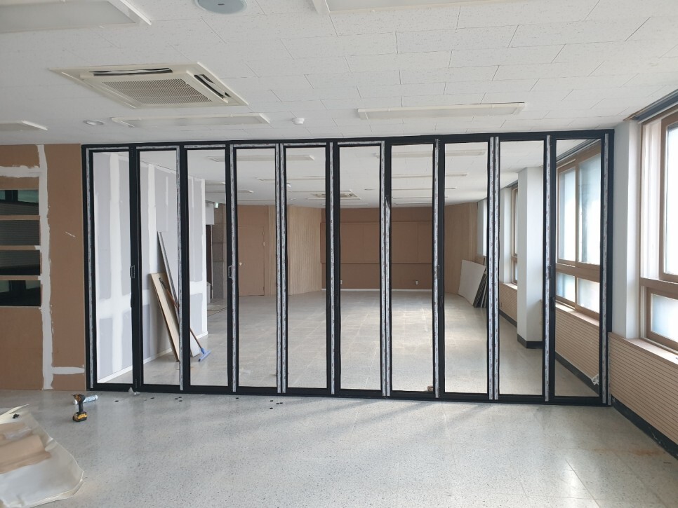 많다는 점을 활용하여 폴딩도어로 공간 분리 후