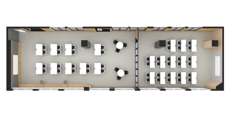 안쪽 공간은 2인 수강용 책상으로 구성하여