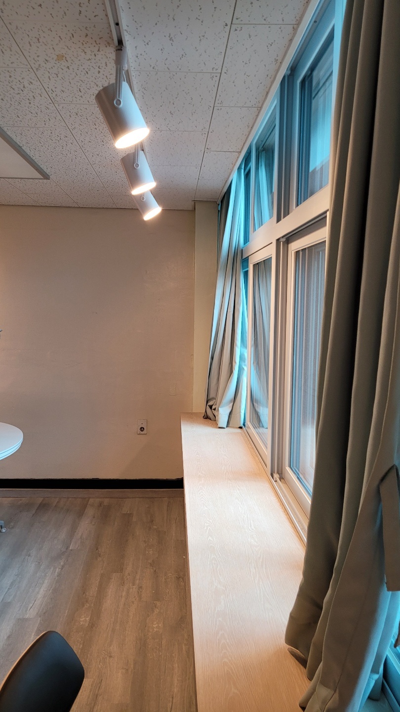 바 테이블 콘센트와 라운드형 테이블의 벽면부