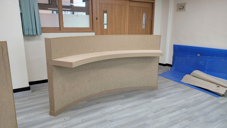 또한 커브형 바 테이블을 제작 및 설치를 진행했고