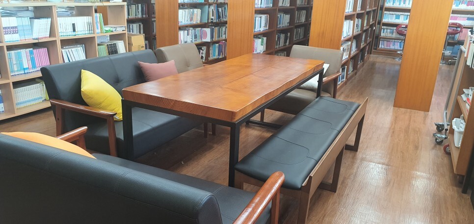 도서실에는 카운터와 열람대 책상과 의자 등이 납품되었고