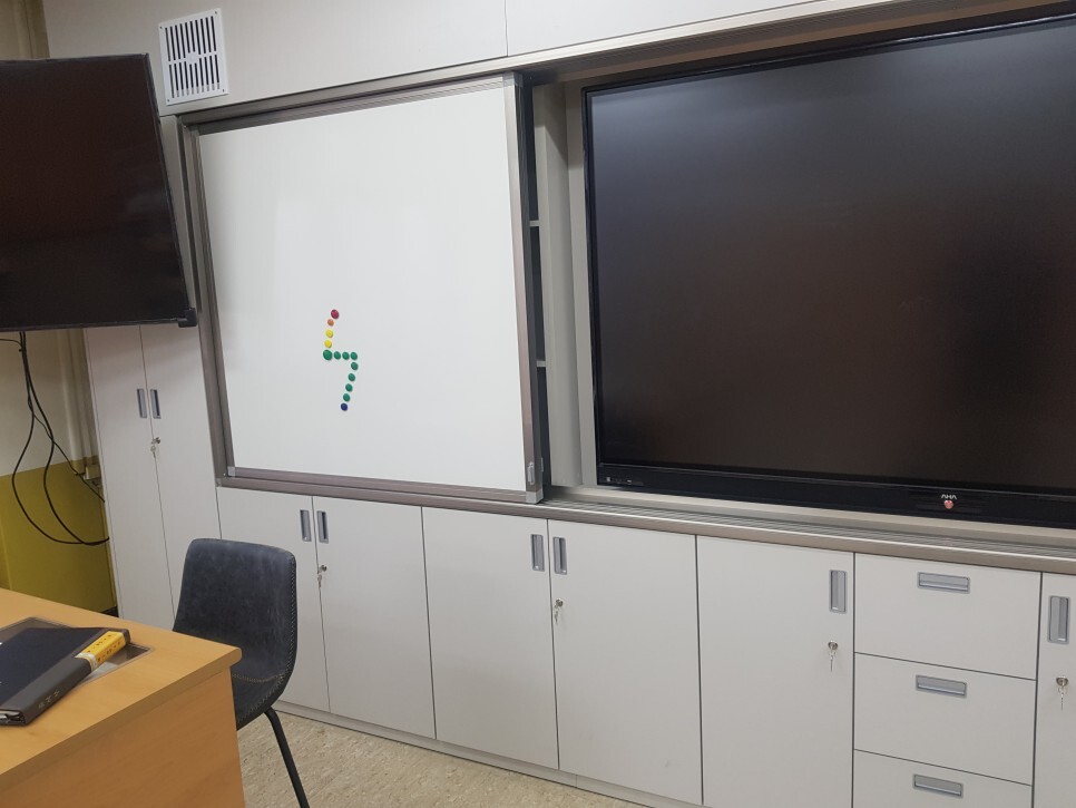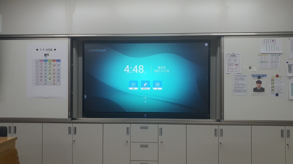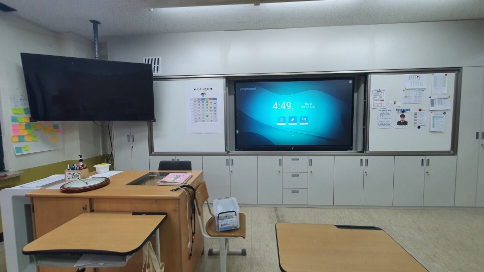 교실 전면부 칠판보조장, 법랑칠판, 전자칠판 설치 완료