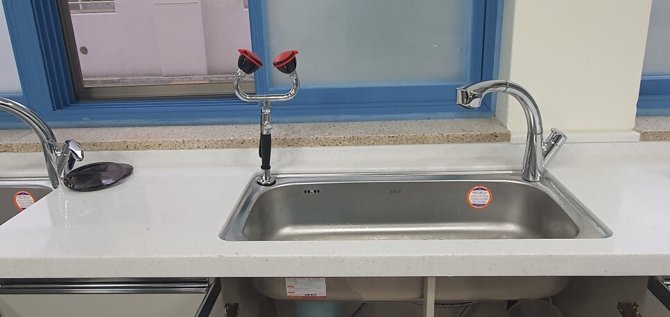 남양주에 위치한 덕소초등학교 과학실 싱크대에 눈 세척기를 설치했습니다.