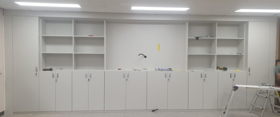 중앙에는 TV를 매립 설치할 수 있게끔 법랑 화이트보드가 미닫이형으로 제작되었습니다.