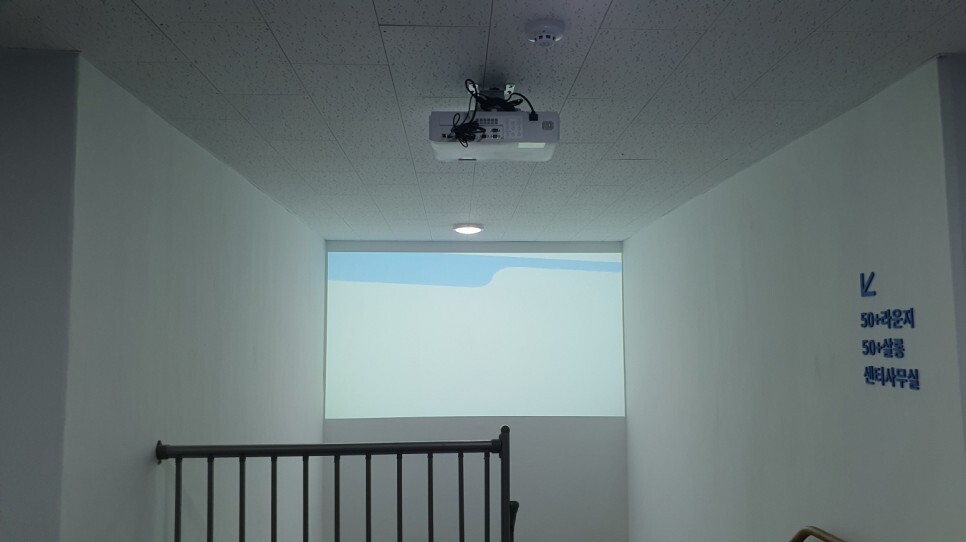 다목적실에 이어 이번에는 층간에 설치한 빔프로젝터입니다.