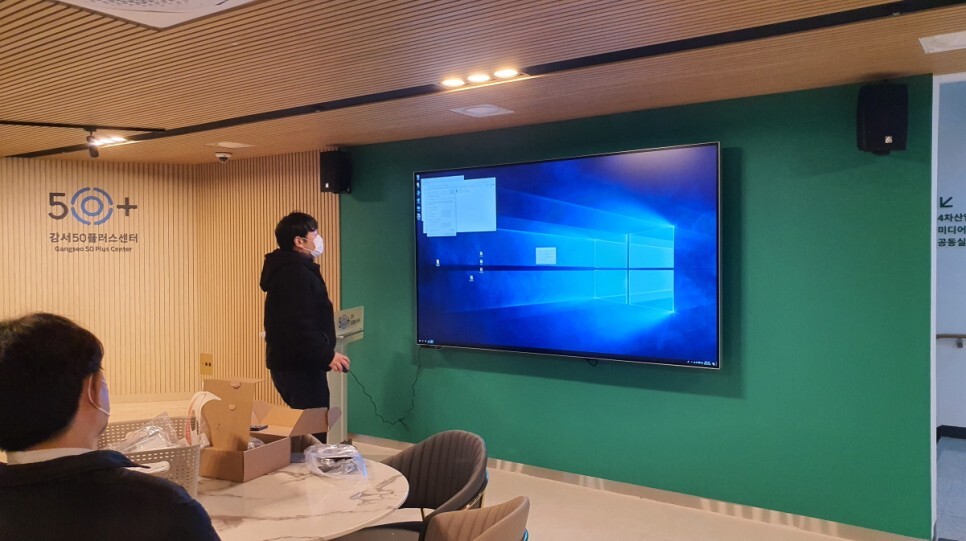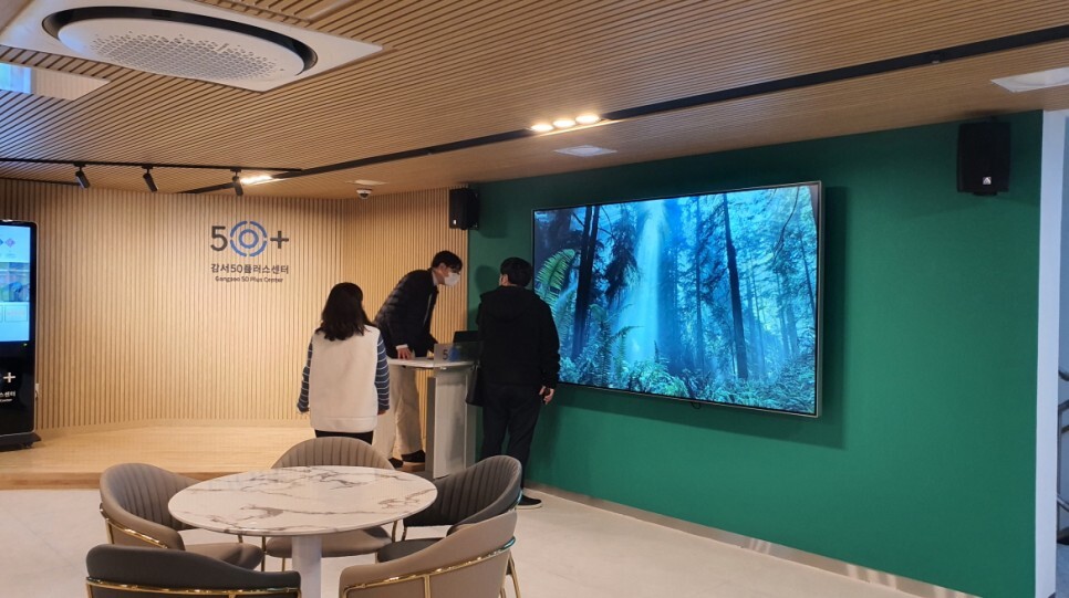 초대형 98인치가 설치되어 강서50플러스센터의 메인으로 자리잡았습니다.