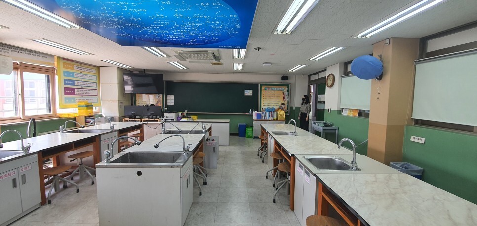기존에 사용하던 칠판과 실험대, 의자 등을 전부