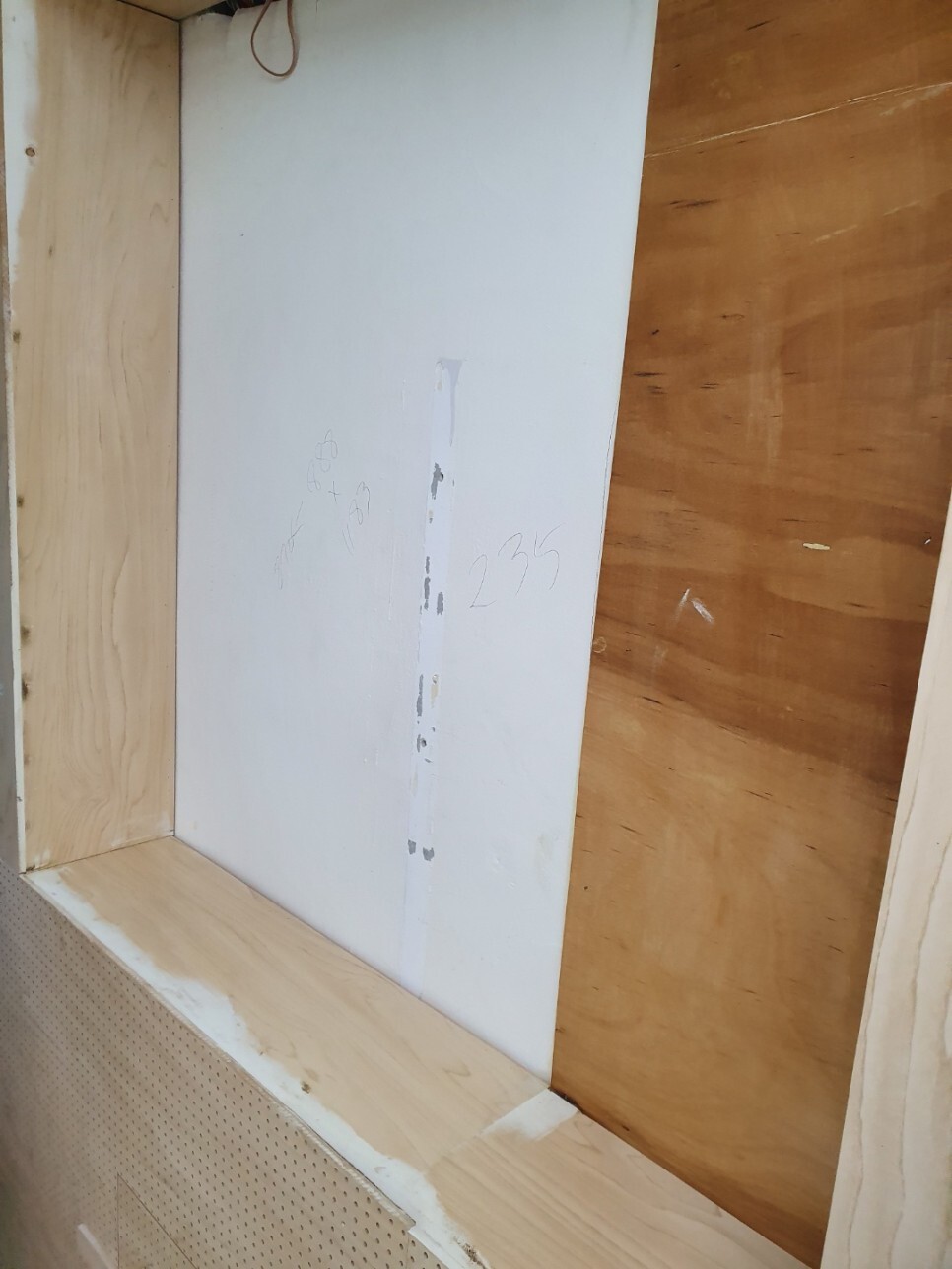 목공 공사를 통해 TV와 유리칠판이 설치 될
