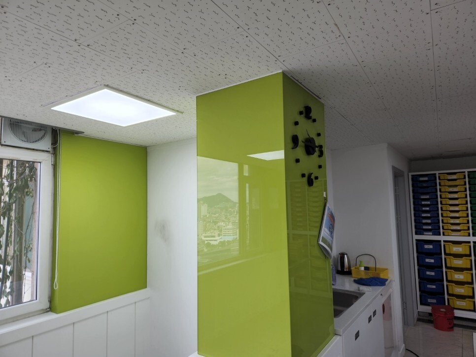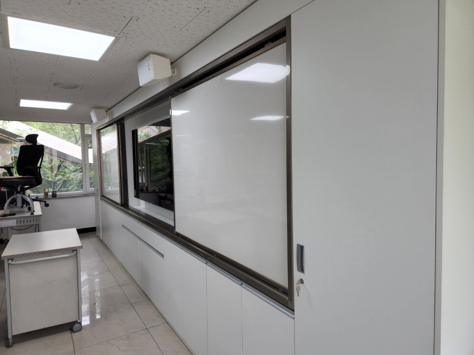 전면부에 칠판보조장을 구축한 뒤 법랑화이트보드,